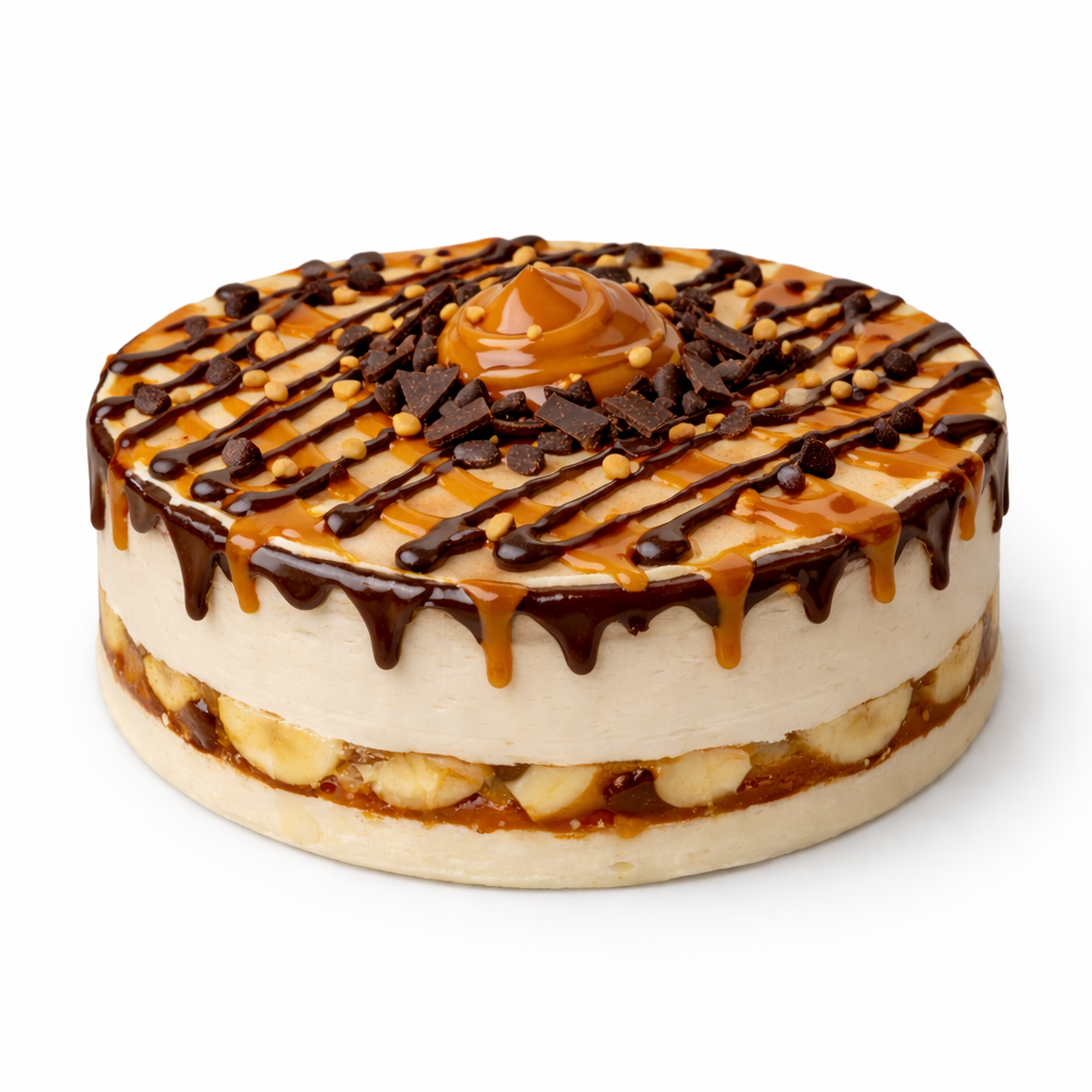 Una tarta espectacular acompañada de caramelo y dulce de leche. Pura explosión de sabor.