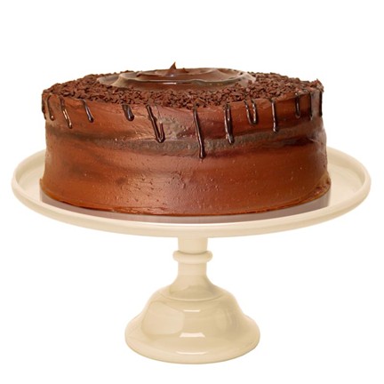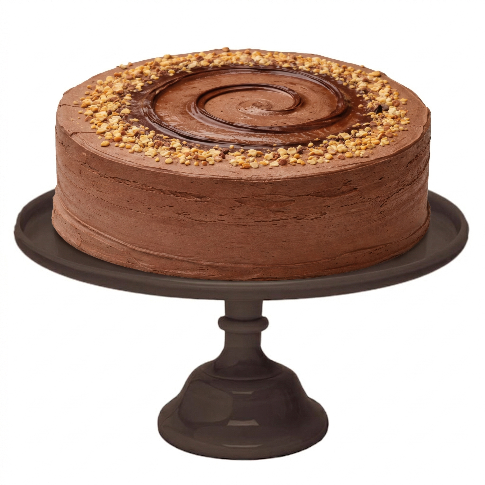 Bizcocho de plátano y nueces sin trozos, relleno y recubierto con una exquisita ganaché de chocolate.