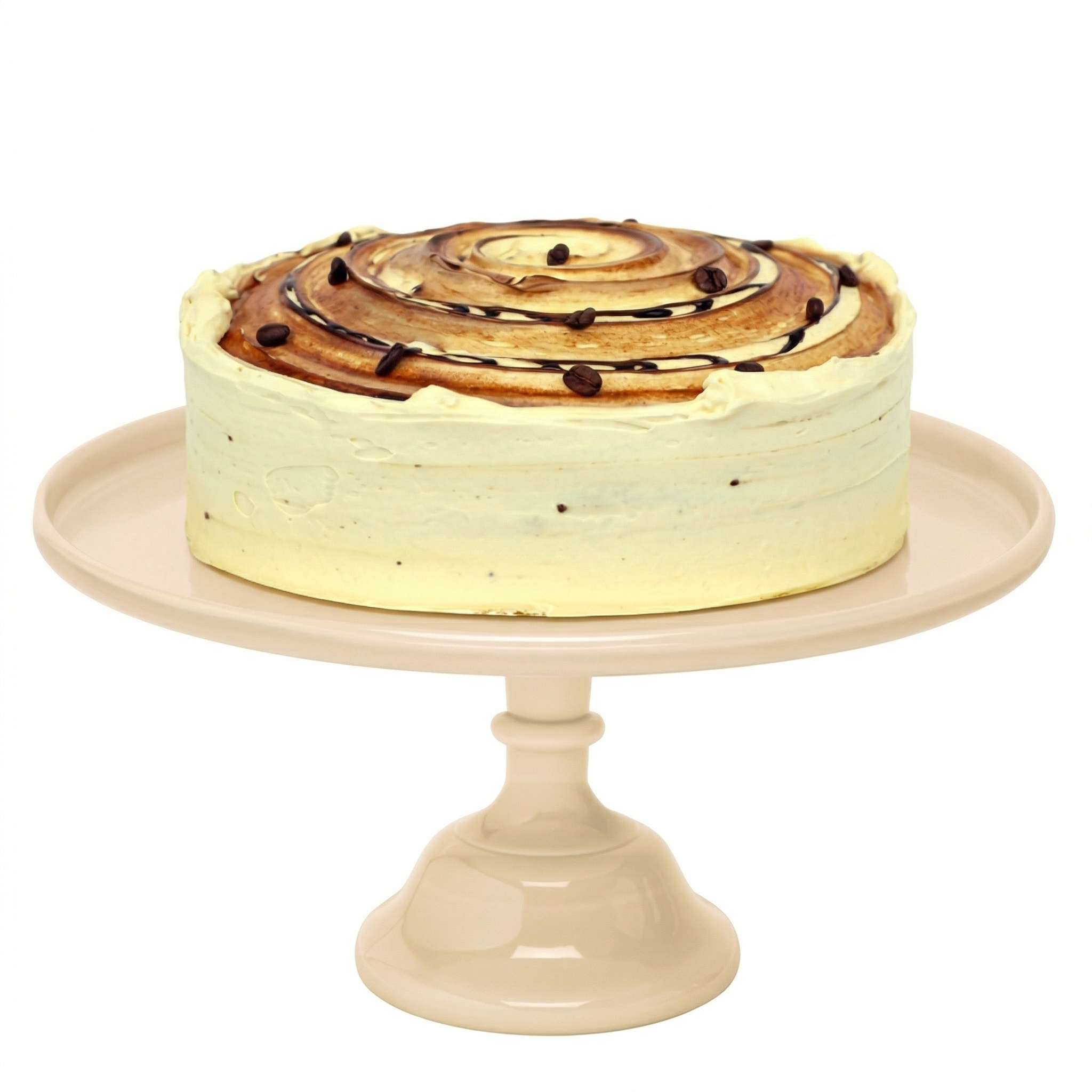 Bizcocho de vainilla al café con frosting de mascarpone y un toque de cacao.