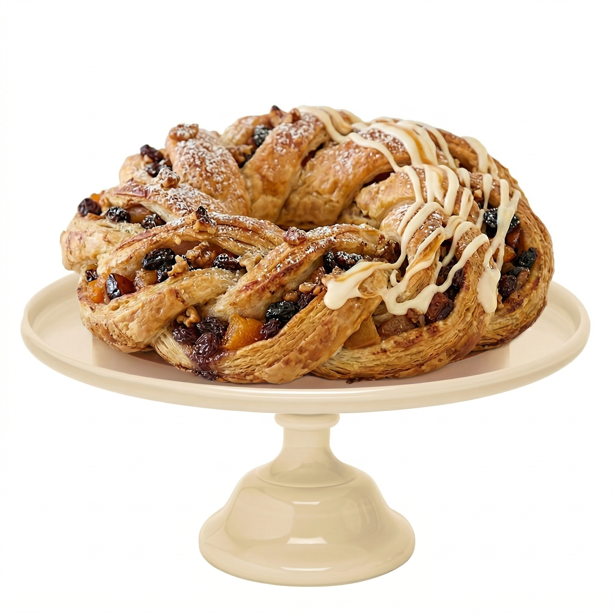Trenza de hojaldre rellena de manzana, pera, nueces y frutas pasas maceradas en licor.